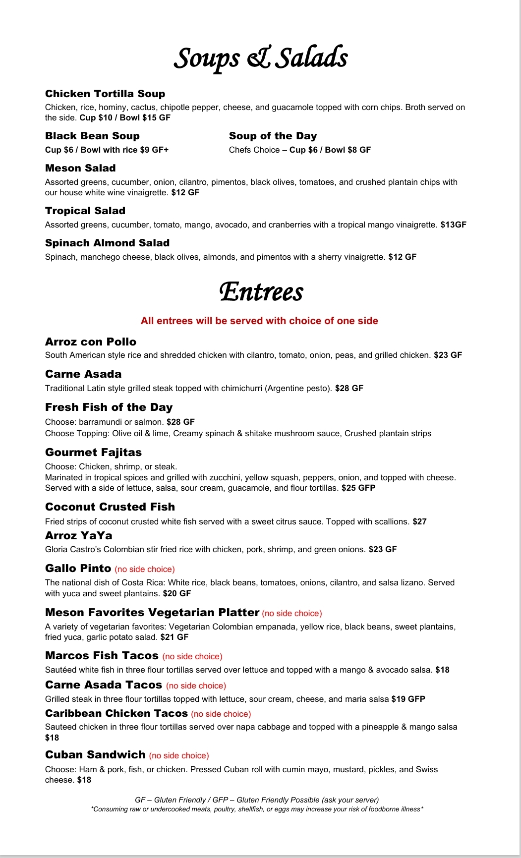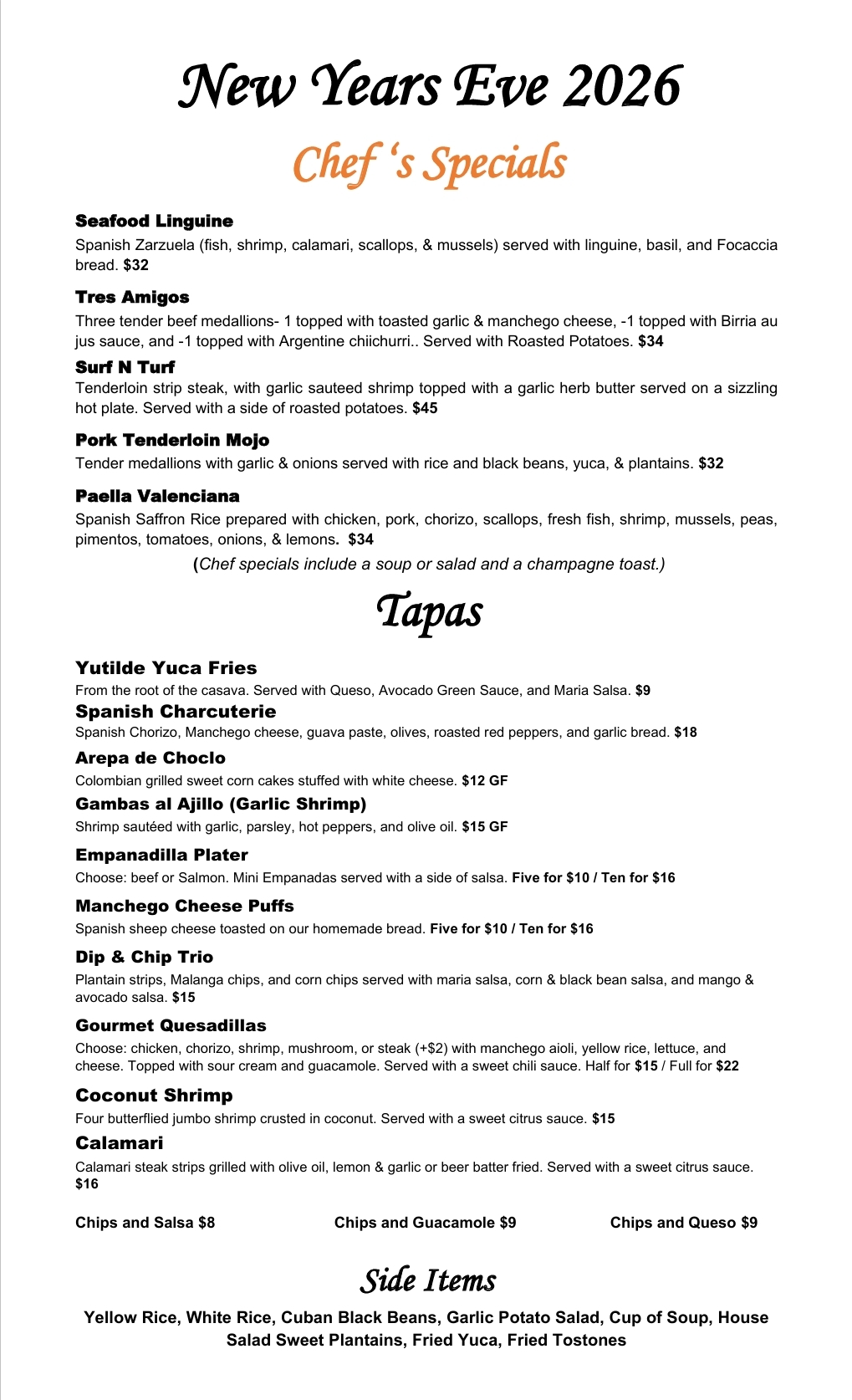 New Years Special Menu